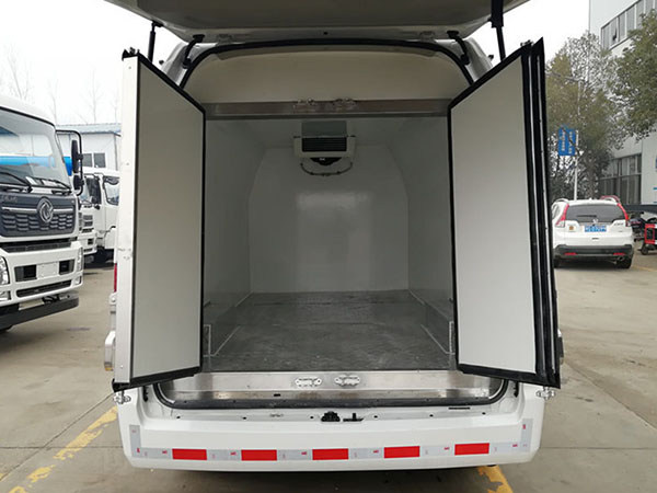 冷藏车用于运输冷冻食品,冷藏车保温厢体采用全封闭式内外玻璃钢板制作,中间夹层为聚氨酯发泡隔热材料,厢体具备重量轻、强度高、无接缝、外形美观、保温性好、耐腐蚀等特点