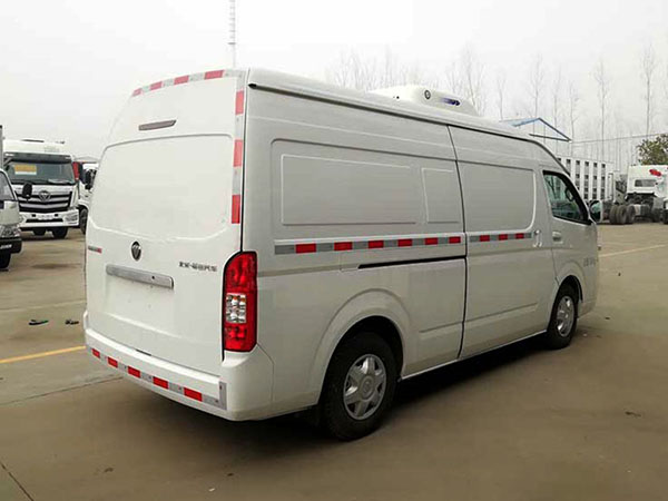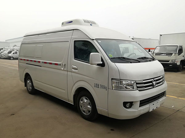 冷藏车用于运输冷冻食品,保温厢体采用全封闭式内外玻璃钢板制作,中间夹层为聚氨酯发泡隔热材料,车厢每块大板均为一次成型,厢体重量轻、强度高、无接缝、保温性好、耐腐蚀