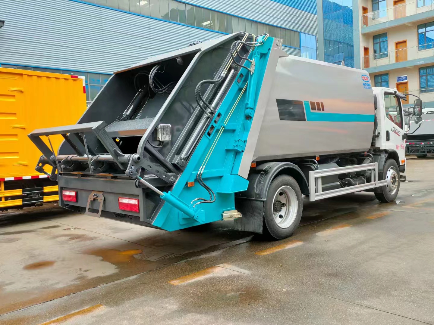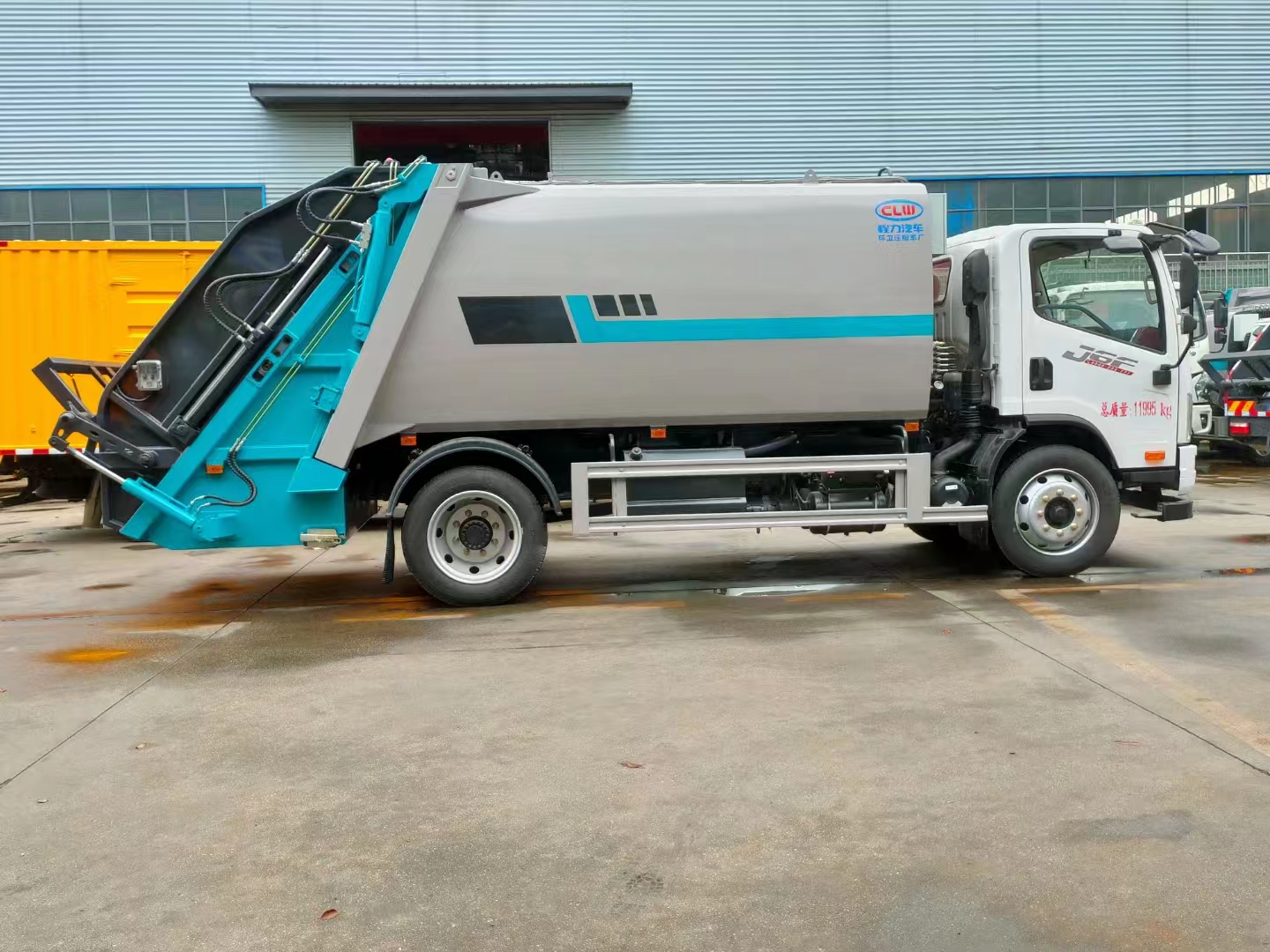 | 上装配置 | 箱体容积11立方,采用边四底四高强板制作,机器人自动焊,电泳工艺涂装,威森博乐多路阀,皖液油泵,填装器外置滑板油缸结构,尾部翻转结构可挂120/240L垃圾桶。 | ||