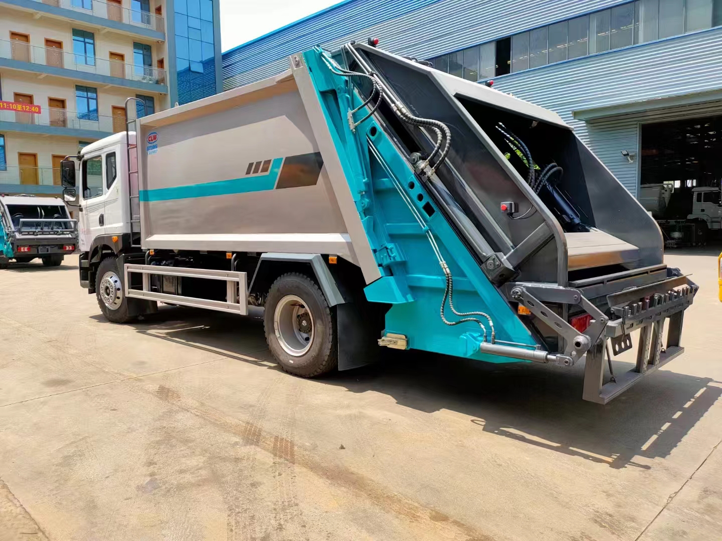 | 上装配置 | 箱体容积14立方,采用边四底五高强板制作,填装器外置滑板油缸结构,机器人自动焊,电泳工艺涂装,威森博乐多路阀,皖液油泵,填装器外置滑板油缸结构,尾部翻转结构可挂120/240L垃圾桶,选装全密封斗/三角斗。 | ||