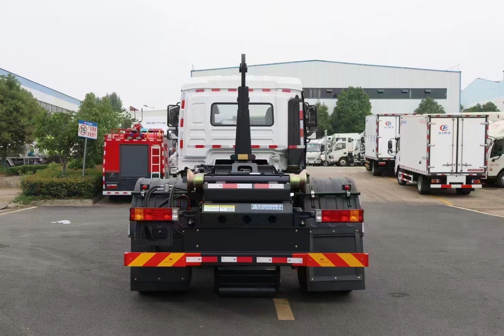 | 上装配置 | 配套14-16方勾臂垃圾箱或移动站,主勾臂由高强度板材制作,双油缸控制,伸缩式主臂,加强型上装结构,液压支腿,横向锁紧,品牌多路阀,进口柱塞泵,标配室内外操作(带遥控),防误操作,带平衡阀,液压锁。 | ||