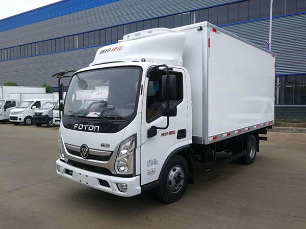 冷藏车用于运输冷冻食品,冷藏车保温厢体采用全封闭式内外玻璃钢板制作,中间夹层为聚氨酯发泡隔热材料,车厢大板均一次成型,厢体具备重量轻、强度高、无接缝、保温性好、耐