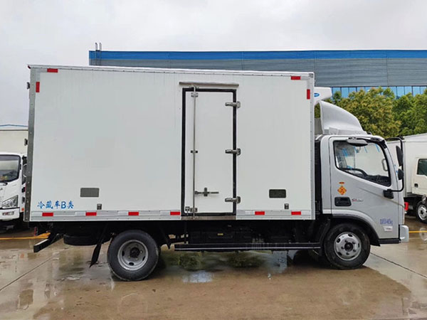 冷藏车用于运输冷冻食品,冷藏车保温厢体采用全封闭式内外玻璃钢板制作,中间夹层为聚氨酯发泡隔热材料,车厢大板均为一次成型,厢体具备重量轻、强度高、无接缝、保温性好、