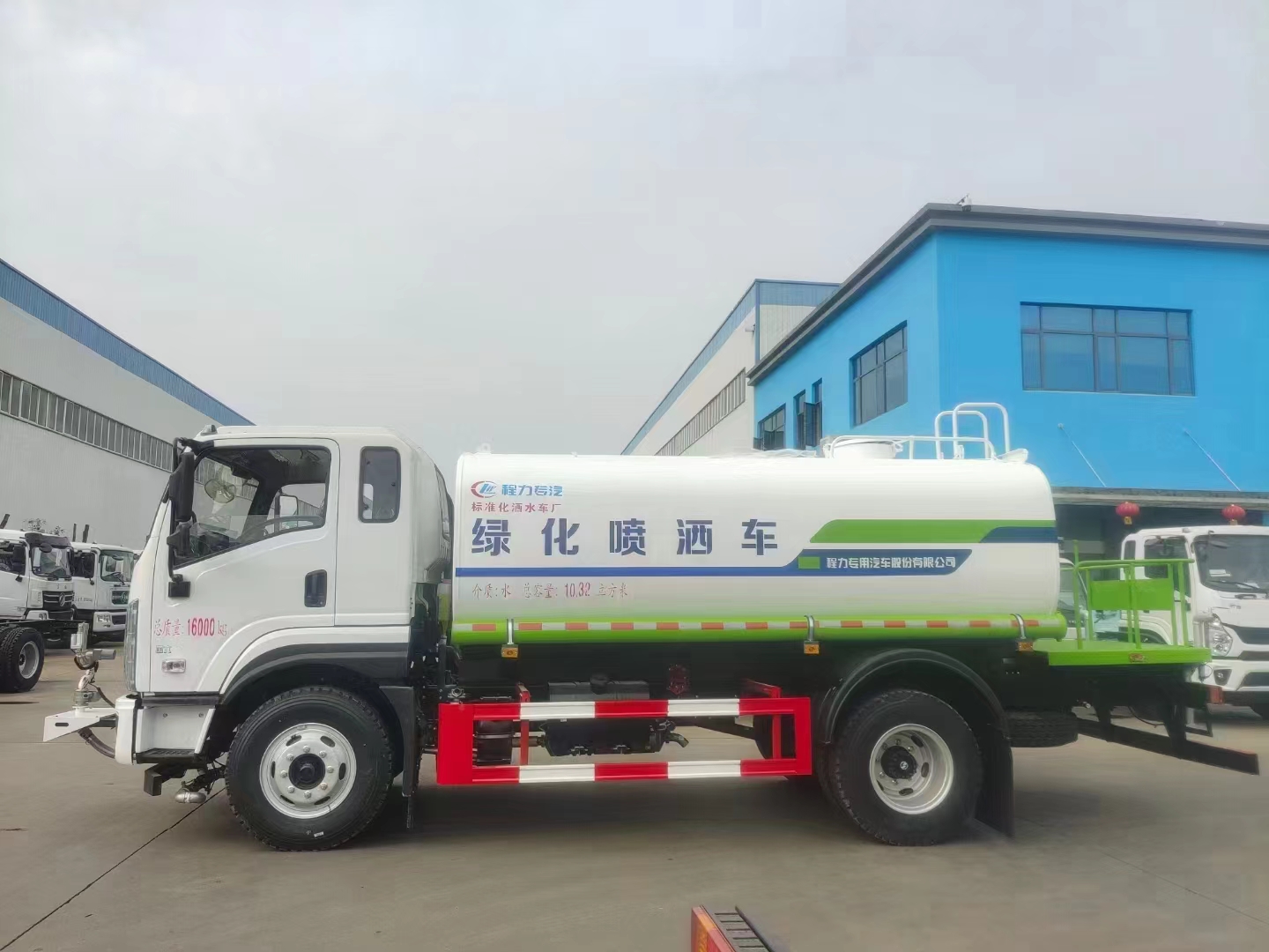 | 上装配置 | 上装武钢优质碳钢板,容积12立方,厚度4mm,封头5mm,前后封头机器人自动焊,内设隔浪板,带液位计, 配程力原厂大功率洒水泵,带驾驶室电控操作,前冲后洒4个新式不锈钢切断阀,前冲 后洒 侧喷 后高炮,后高炮可调节柱状 雨状和雾状,新式冲孔工作平台,主管道加粗,副管道全采用优质镀锌管道,带自吸自排,自流阀,消防接头,过滤装置,边灯带电,其他标配… | ||