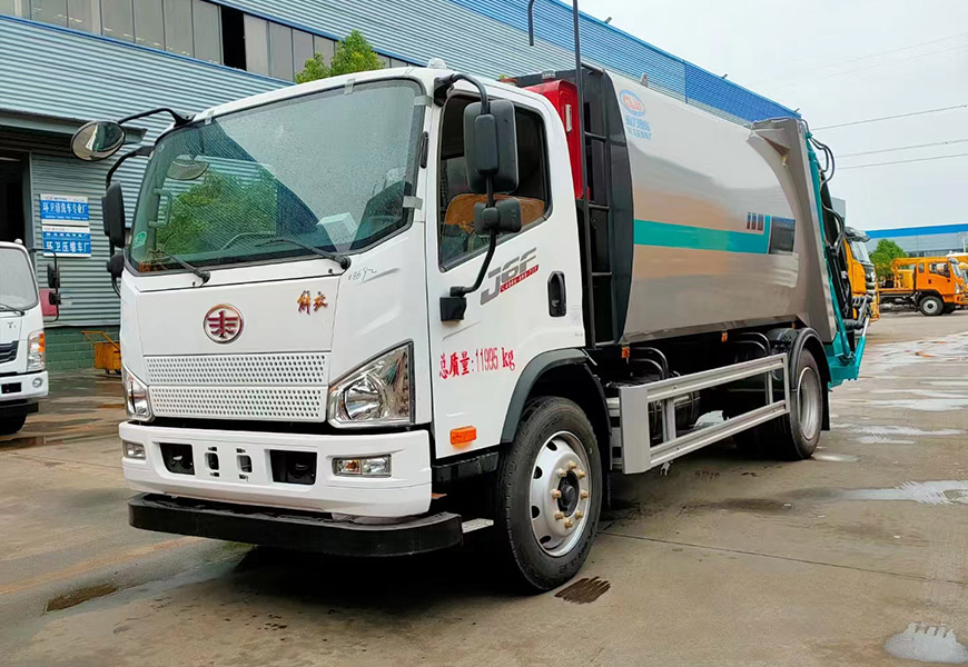 | 上装配置 | 箱体容积11立方,采用边四底四高强板制作,机器人自动焊,电泳工艺涂装,威森博乐多路阀,皖液油泵,填装器外置滑板油缸结构,尾部翻转结构可挂120/240L垃圾桶。 | ||